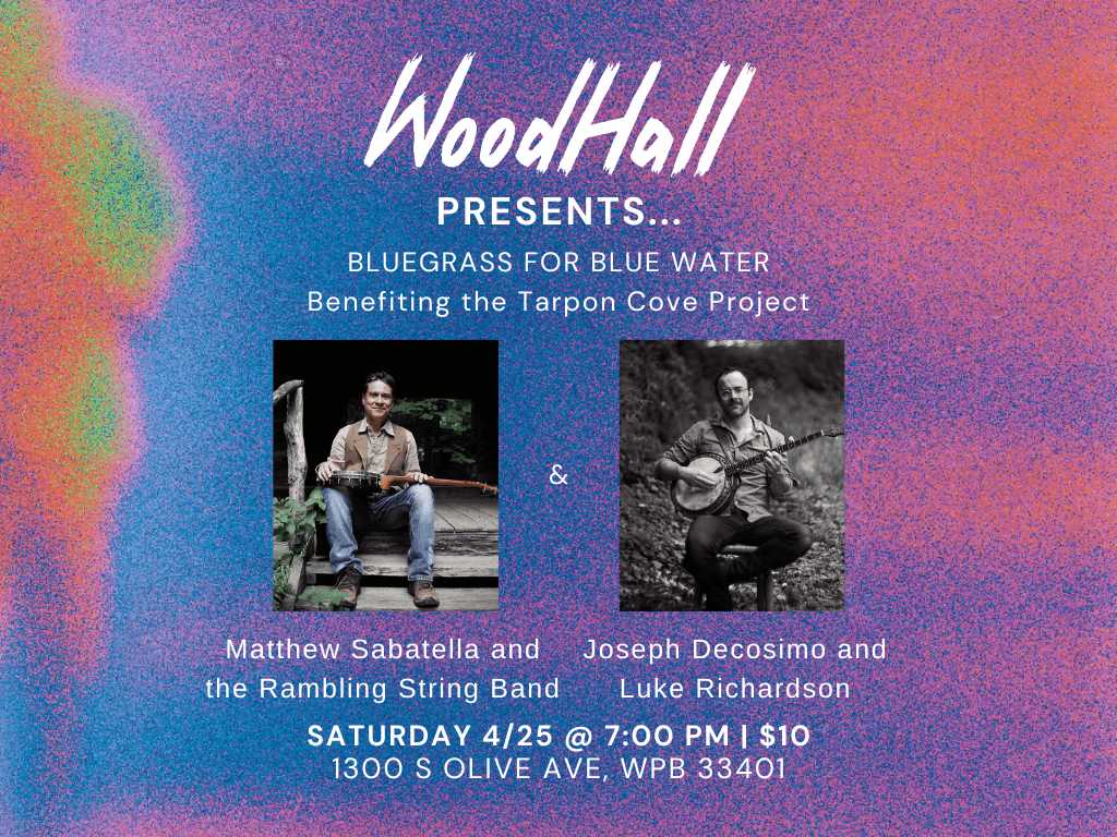 Live Bluegrass music, featuring local bands as well as touring artists Joseph Decosimo and Luke Richardson. All of this incredible talent celebrating our investment in the Tarpon Cove Islands and the Lake Worth Lagoon, as we work for Bluer Waters in our Intracoastal.